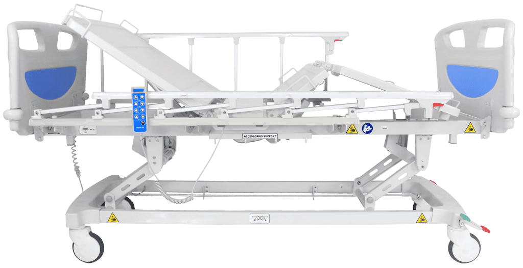 This electric hospital bed is used as a support tool in the treatment, care, and recovery process of patients. This patient bed uses innovative technology to create an ideal combination of clinical benefits for patients and medical personnel. Special features support the important function of patient positioning, including adjusting bed height, back angle, leg angle, and patient tilt, enhancing the effectiveness of care, and providing excellent working conditions for medical staff to help minimize risks associated with patient care procedures with high precision. This ensures that safe and comfortable patient positioning can be achieved according to the needs of both patients and medical staff throughout the treatment and care process.